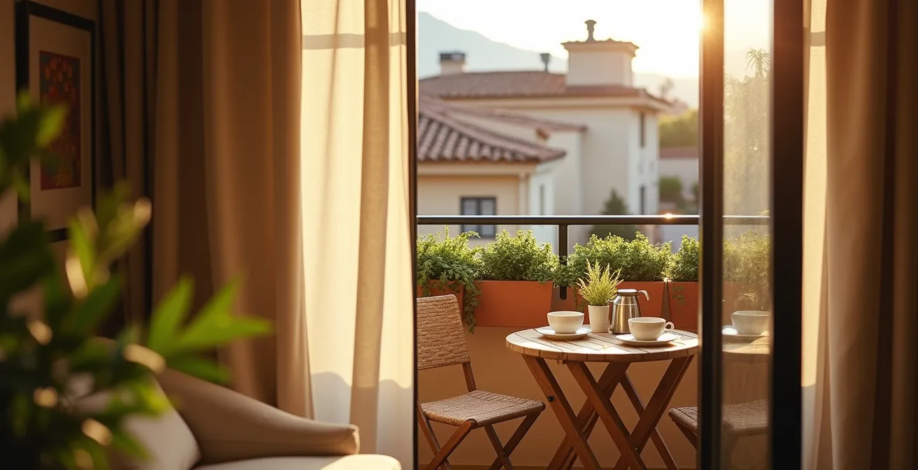 Pero, ¿y si la clave para la transformación no estuviera en la decoración superficial, sino en una serie de decisiones de «ingeniería de lo pequeño» casi invisibles? El verdadero cambio reside en adoptar un enfoque estructural. No se trata de qué poner, sino de cómo ponerlo para que el espacio se multiplique. La solución pasa por liberar el suelo a toda costa, pensar en tres dimensiones y elegir cada pieza no por su belleza, sino por su inteligencia funcional y su capacidad para cumplir una doble misión. Este no es un manual de decoración, es una hoja de ruta para reconquistar tu balcón y convertirlo, por fin, en ese oasis funcional que mereces.