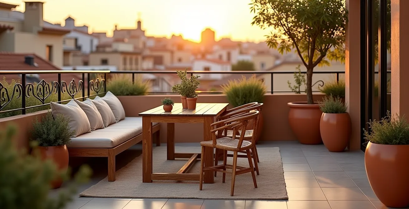 La respuesta habitual a estos dilemas suele centrarse en consejos genéricos como usar mobiliario multifuncional o pintar las paredes de colores claros para dar sensación de amplitud. Aunque útiles, estos trucos no atacan la raíz del problema. La verdadera clave no reside en los objetos que colocas, sino en cómo planificas los flujos de movimiento y anticipas los usos conflictivos. El secreto es dejar de ver tu terraza como una foto estática y empezar a tratarla como un sistema dinámico y polivalente.