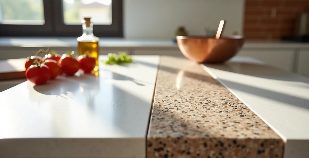 Recomendación: Antes de decidir, analiza tu «zona de combate» (el espacio entre el fregadero y la placa). Si cocinas con mucho calor y apoyas sartenes, prioriza Dekton o granito. Si en tu casa hay mucho movimiento y riesgo de golpes, el cuarzo te dará más tranquilidad.