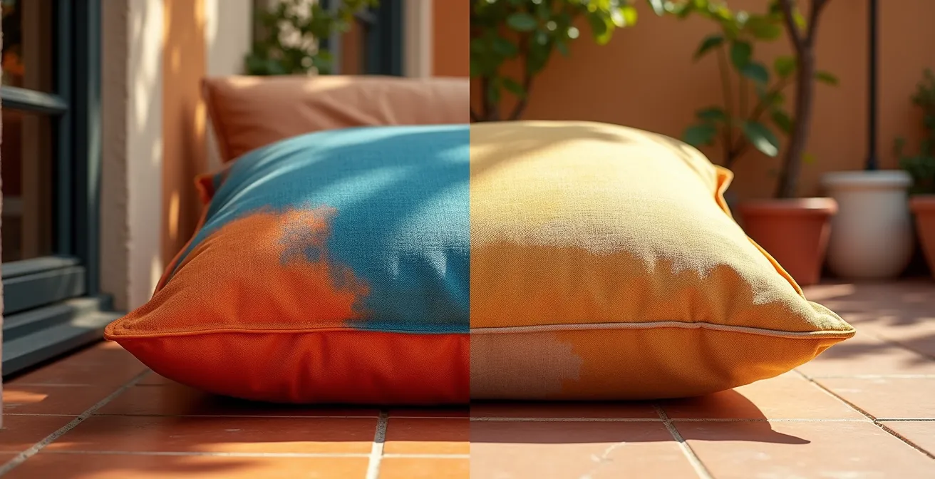 Esa sensación es universal para cualquier propietario en España: inviertes en unos cojines de exterior de un rojo vibrante y, tras un solo verano, te encuentras con un decepcionante tono rosa pálido. Has seguido los consejos habituales, has comprado un «buen poliéster resistente a los rayos UV», pero el resultado es el mismo. La frustración te lleva a pensar que la única solución es resignarse a colores neutros o pasarte la vida guardando y sacando los textiles cada vez que sale el sol o amenaza lluvia.