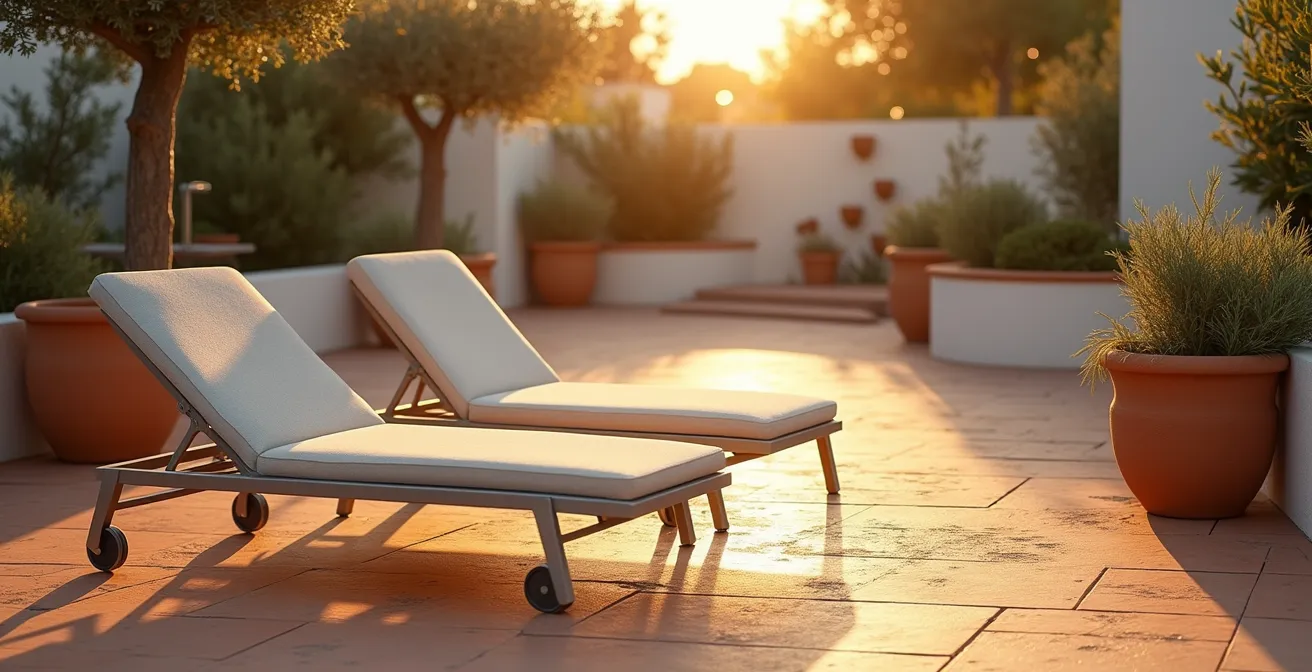El ritual es conocido para cualquier amante del sol en España: esa danza casi coreografiada que consiste en mover la tumbona cada hora para capturar los últimos rayos de sol antes de que se escondan tras un árbol o el edificio. Esta búsqueda incesante del ángulo perfecto convierte la elección de una tumbona en una decisión estratégica. Muchos la simplifican a una pregunta binaria: ¿con ruedas o sin ellas? La movilidad parece la respuesta obvia, pero es una visión incompleta del verdadero desafío.