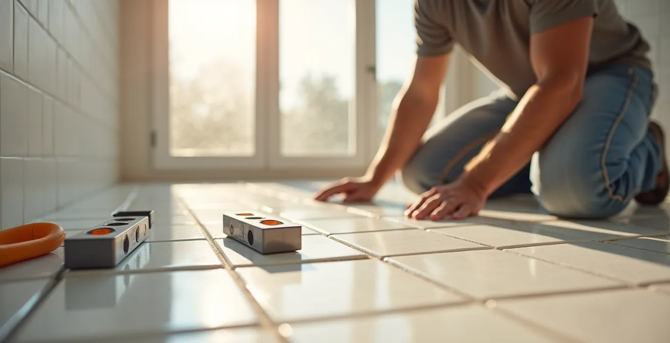El mercado está lleno de consejos superficiales que se centran en la belleza del canto vivo y la junta mínima. Te hablan de modernidad y de continuidad visual. Lo que no te cuentan es la tiranía de ese borde perfecto. Un azulejo tradicional, con su borde ligeramente biselado, perdona pequeñas imperfecciones en el soporte. El rectificado, no. El rectificado es un chivato implacable. Cada milímetro de desnivel, cada «ceja» entre baldosas, cada mota de cemento mal limpiada se convierte en un fallo garrafal que grita «chapuza» a los cuatro vientos. Por eso, este artículo no es una simple comparativa. Es la hoja de ruta de un alicatador para que entiendas el «Sistema Rectificado» en su totalidad: desde la nivelación del suelo hasta la elección de la lechada. Solo así podrás decidir si esta inversión es para ti.